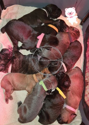 We are family-owned and operated, Caliber Cane Corso, LLC's breeding program is committed to providing our clients with the best possible experience. Our dogs are carefully bred for temperament, health, and conformation to produce the highest quality puppies. We believe that every Caliber Cane Corso, LLC puppy deserves a loving home, and we strive to match our puppies with the perfect families. Explore our website to learn more about our breeding program, view our available puppies, and contact us to reserve your next companion.